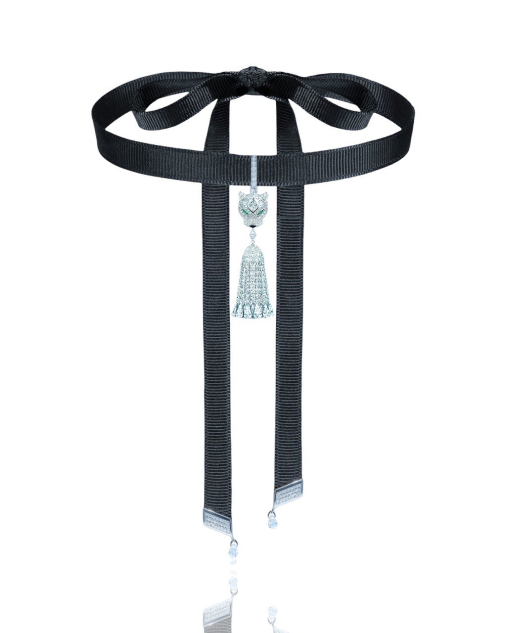 Чокер с Кисточкой LA PANTERA, серебро 925 пробы, покрытие родий, камни кубический цирконий бриллиантовой огранки.