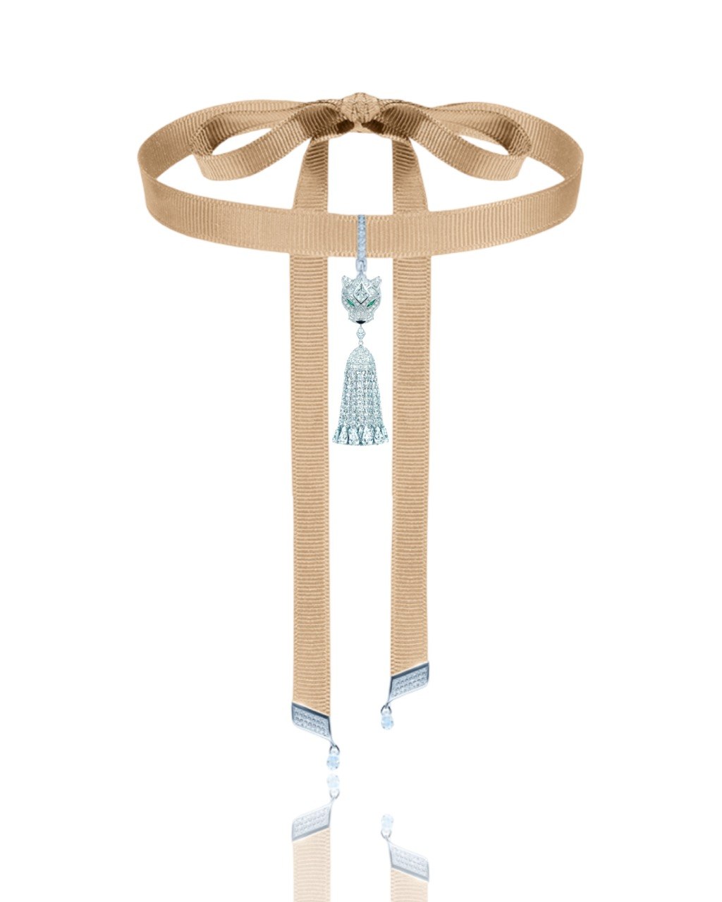 Чокер с Кисточкой LA PANTERA, серебро 925 пробы, покрытие родий, камни кубический цирконий бриллиантовой огранки.